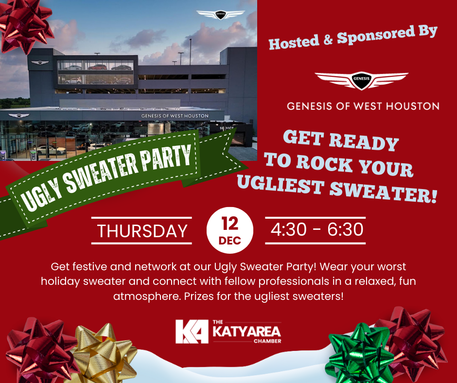 Join us for some festive fun and holiday cheer at the Katy Area Chamber’s Ugly Sweater Party Business After Hours Networking Event! This is the perfect opportunity to mix and mingle with fellow business professionals in a relaxed and fun atmosphere while showing off your most outrageous holiday attire.