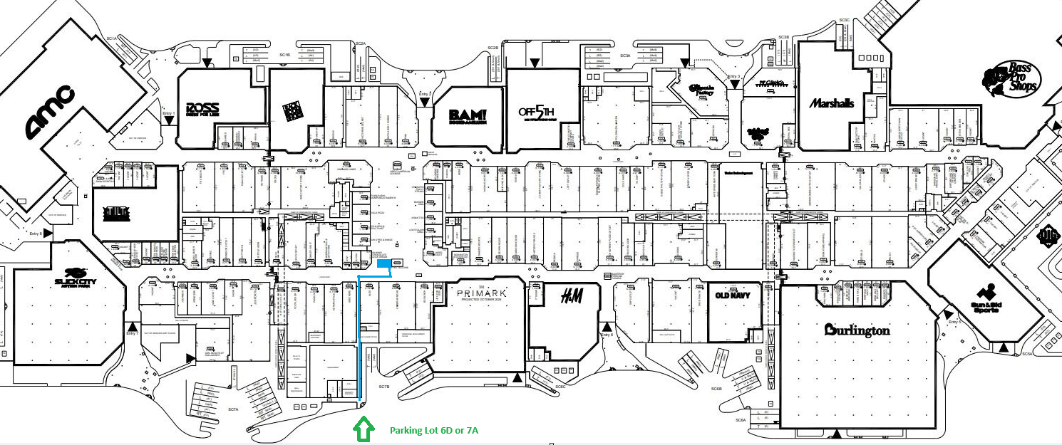 Enter through the Security Hallway Entrance near Parking Lot 6D or 7A. Main entrance doors will not be open. You will be directed to the event in the food court.