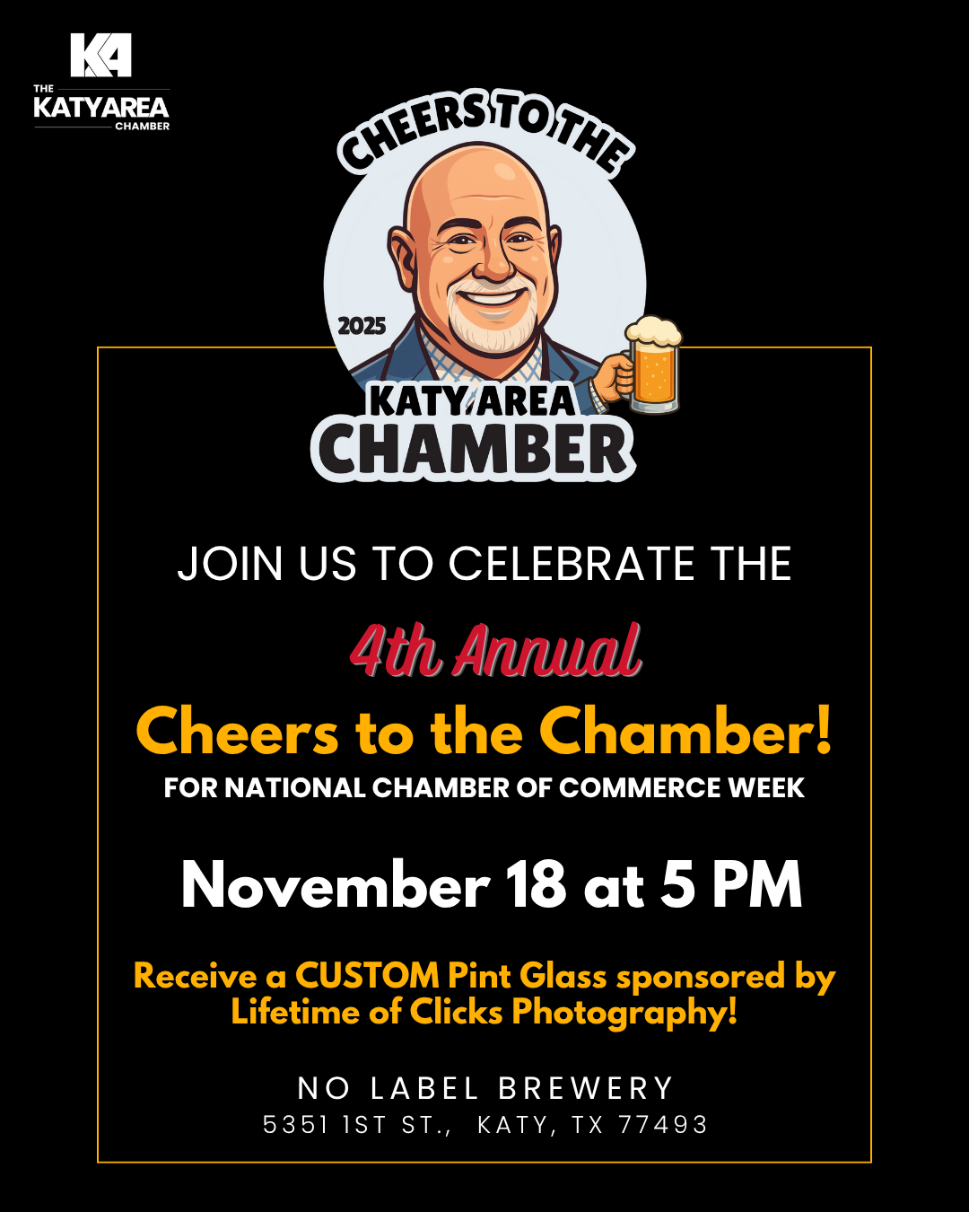 Join the Katy Area Chamber as we celebrate Chamber of Commerce Week and host our fourth annual Cheers to the Chamber!
