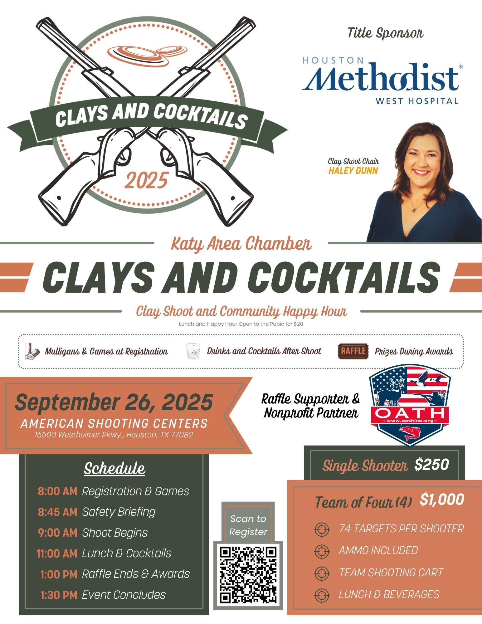 Whether you're an experienced shooter or a first-timer, Clays & Cocktails is the perfect way to connect with local businesses, enjoy the great outdoors, and celebrate Katy’s vibrant community.